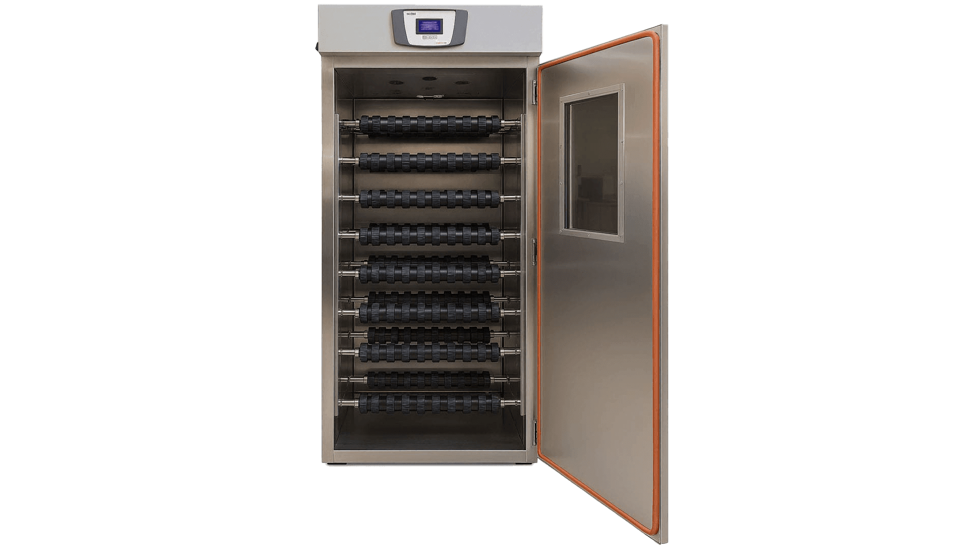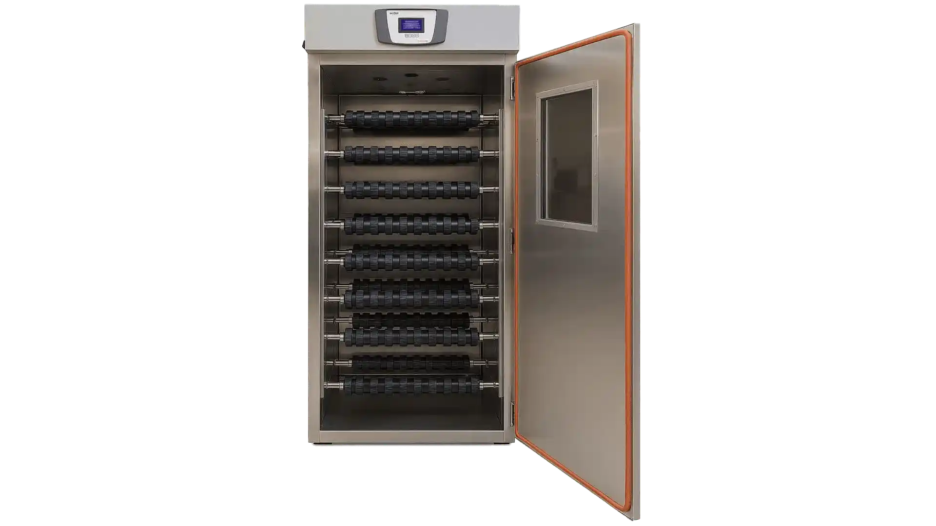 این مدل با حفظ تمام ویژگیهای انکوباتور سری INCUBE_1000، به جای شلفهای ثابت، از رولرهای قابل تنظیم بهره میبرد که امکان چرخش یکنواخت باتلها را در محیط ایزوله فراهم میسازد.